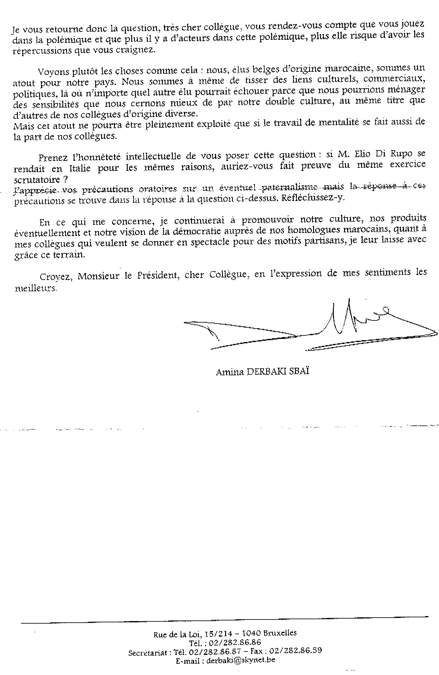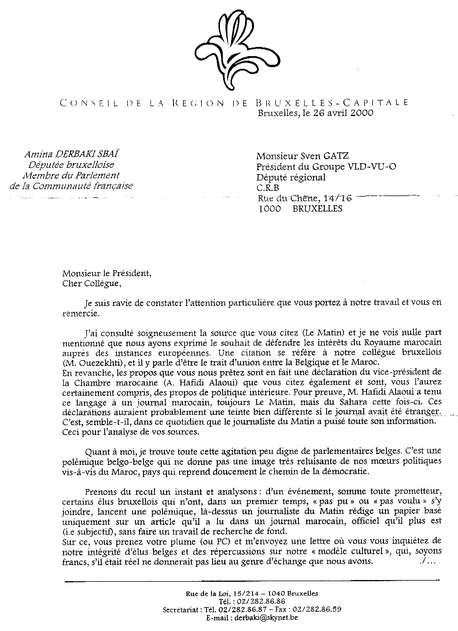 article du Matin (de Bruxelles) et mise au point de Fatiha Saïdi (Ecolo)